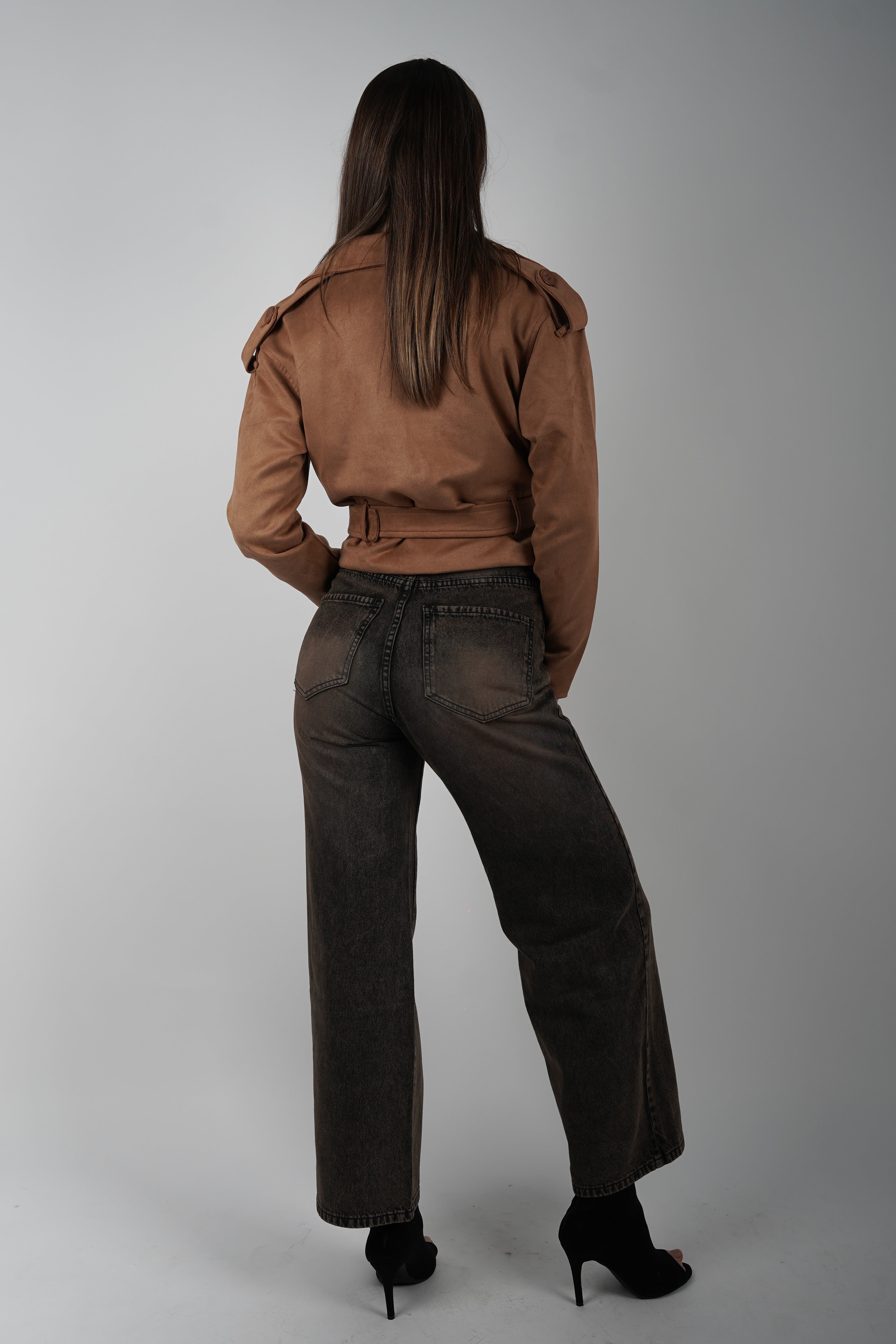 El equilibrio perfecto entre elegancia y naturalidad. Su textura de suede suave al tacto y su corte mini realzan la silueta con sutileza. Ideal para looks urbanos o de transición.