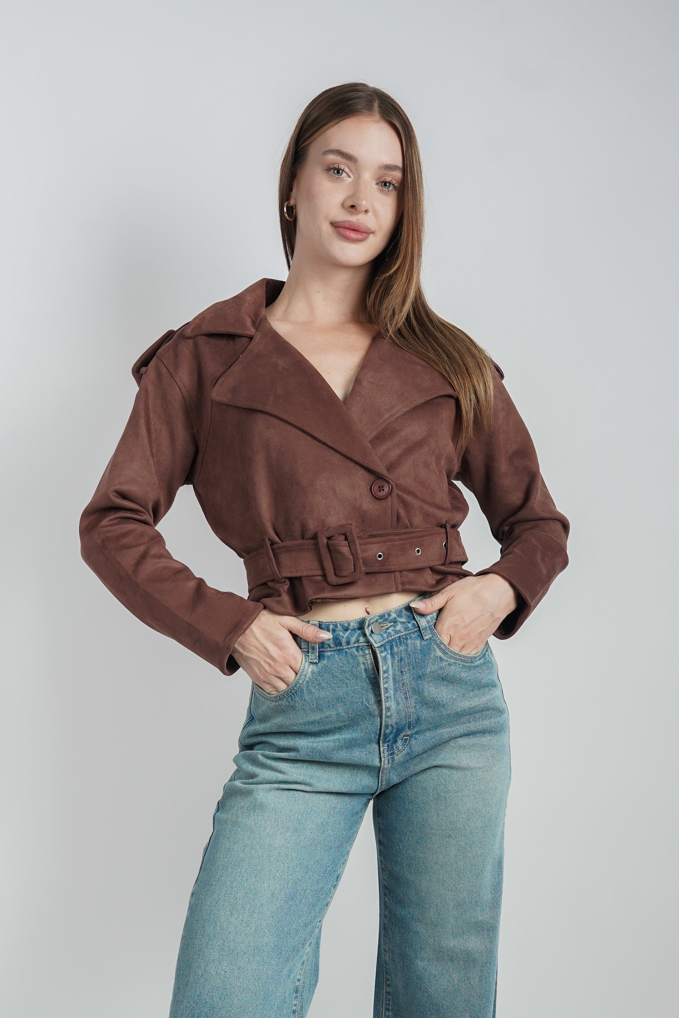 Una prenda que combina calidez, textura y sofisticación. Su color chocolate profundo resalta en cualquier ocasión, aportando carácter y suavidad a tus looks de temporada.