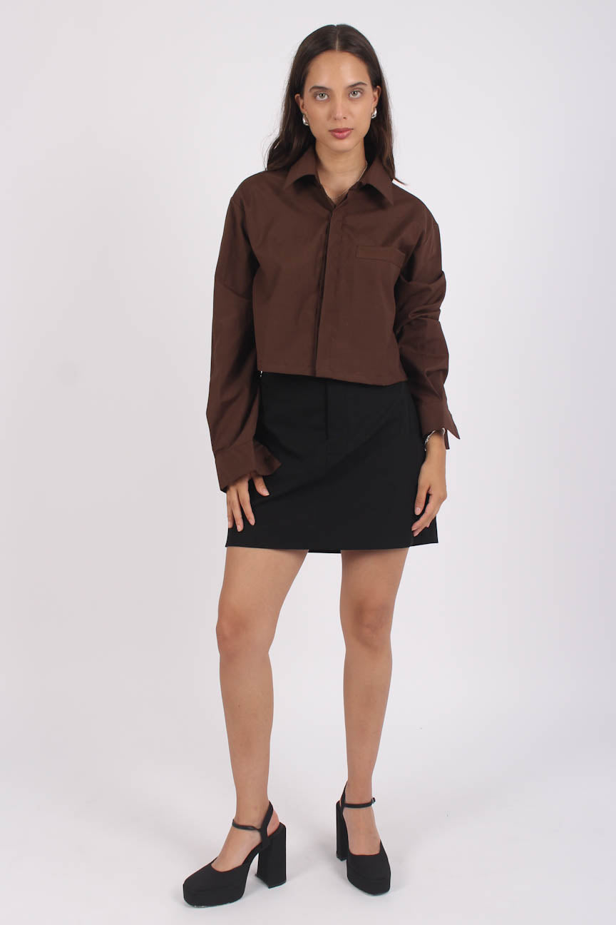 Falda sastre de tiro alto, con forro interior, cierre con broche lateral y botón. Estructura definida y corte elegante, ideal para cualquier ocasión donde quieras proyectar sofisticación sin esfuerzo.