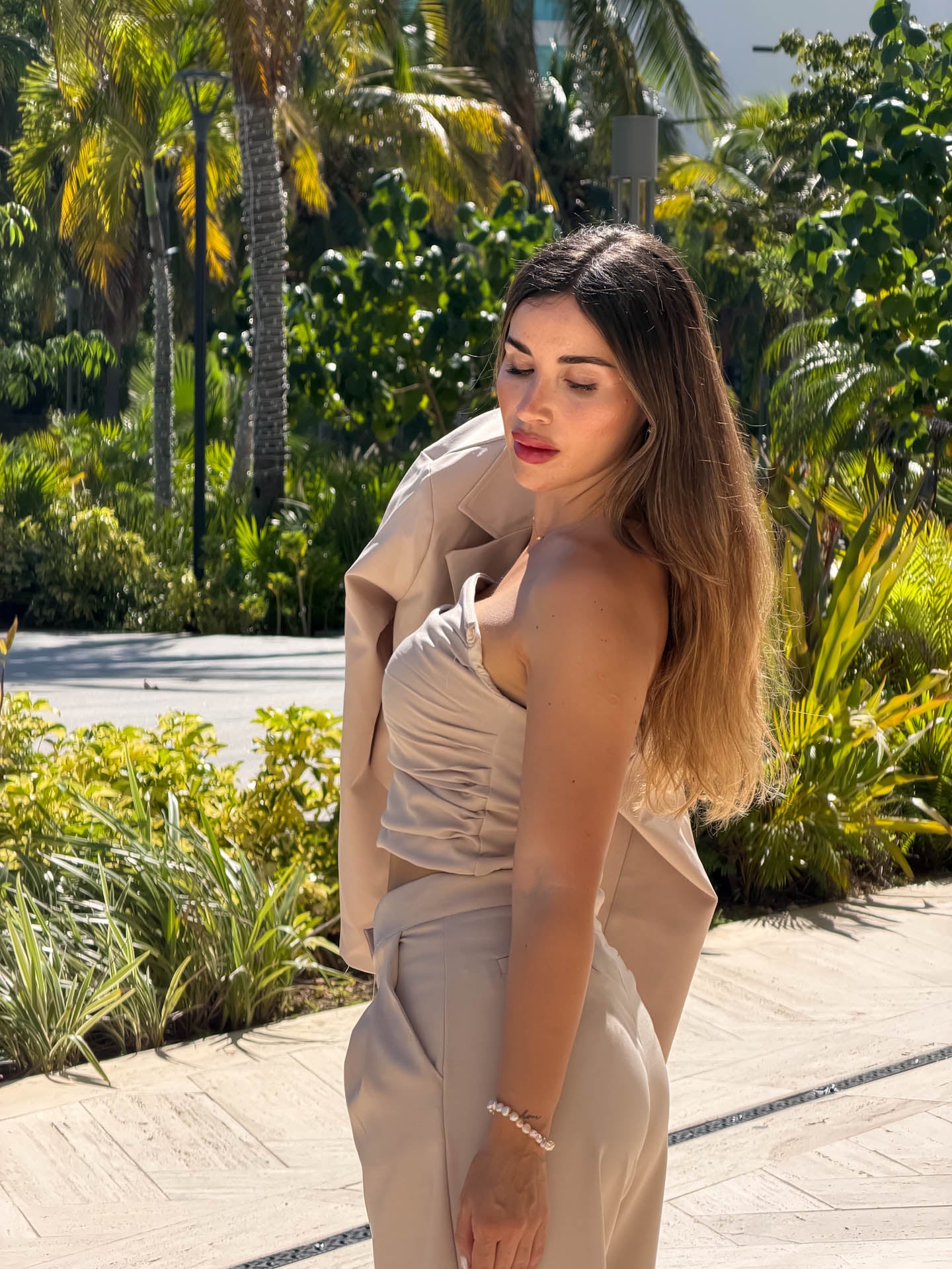 La caída fluida y la silueta definida lo han convertido en uno de los favoritos de Amaru: atemporal, elegante y perfecto para cualquier ocasión.