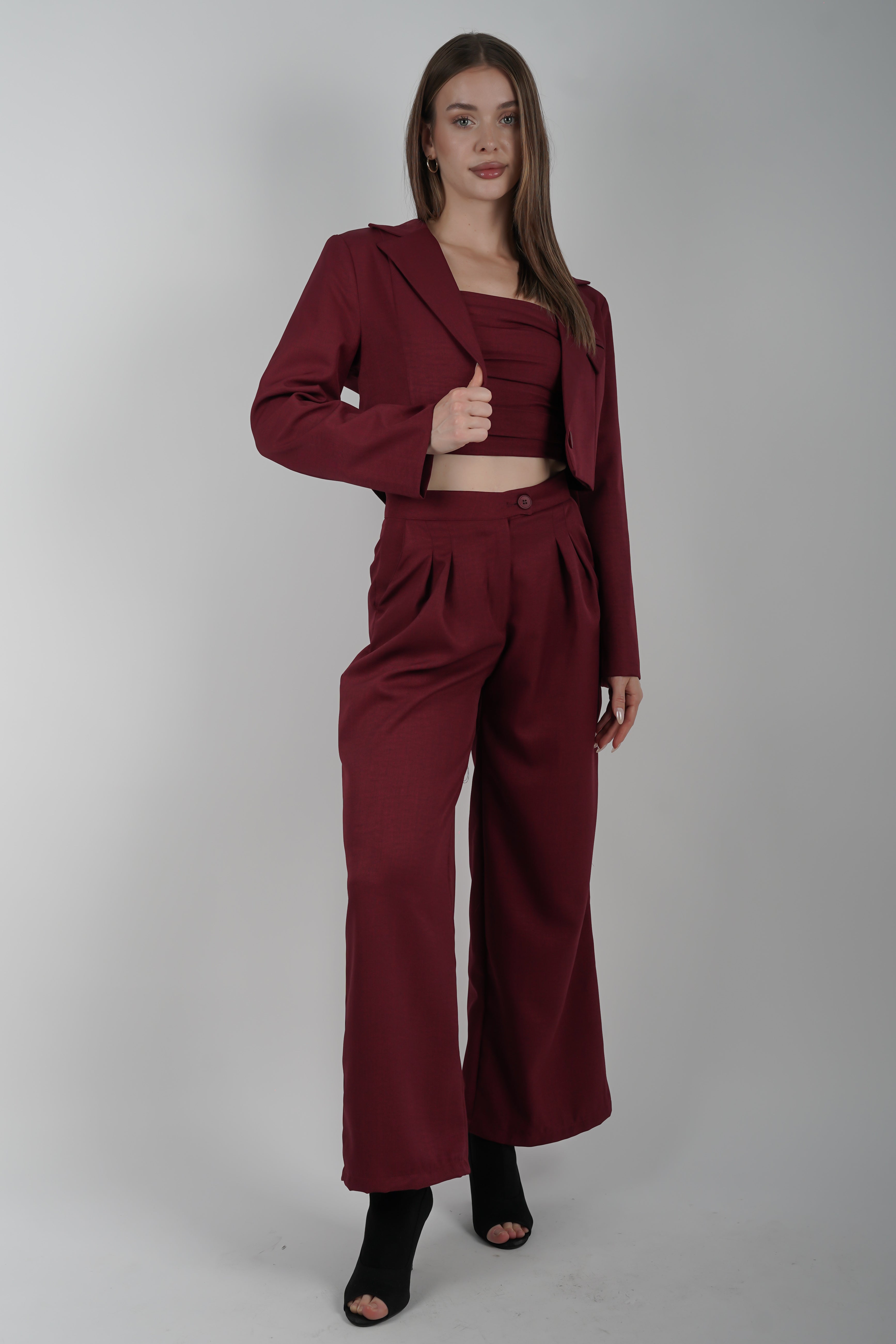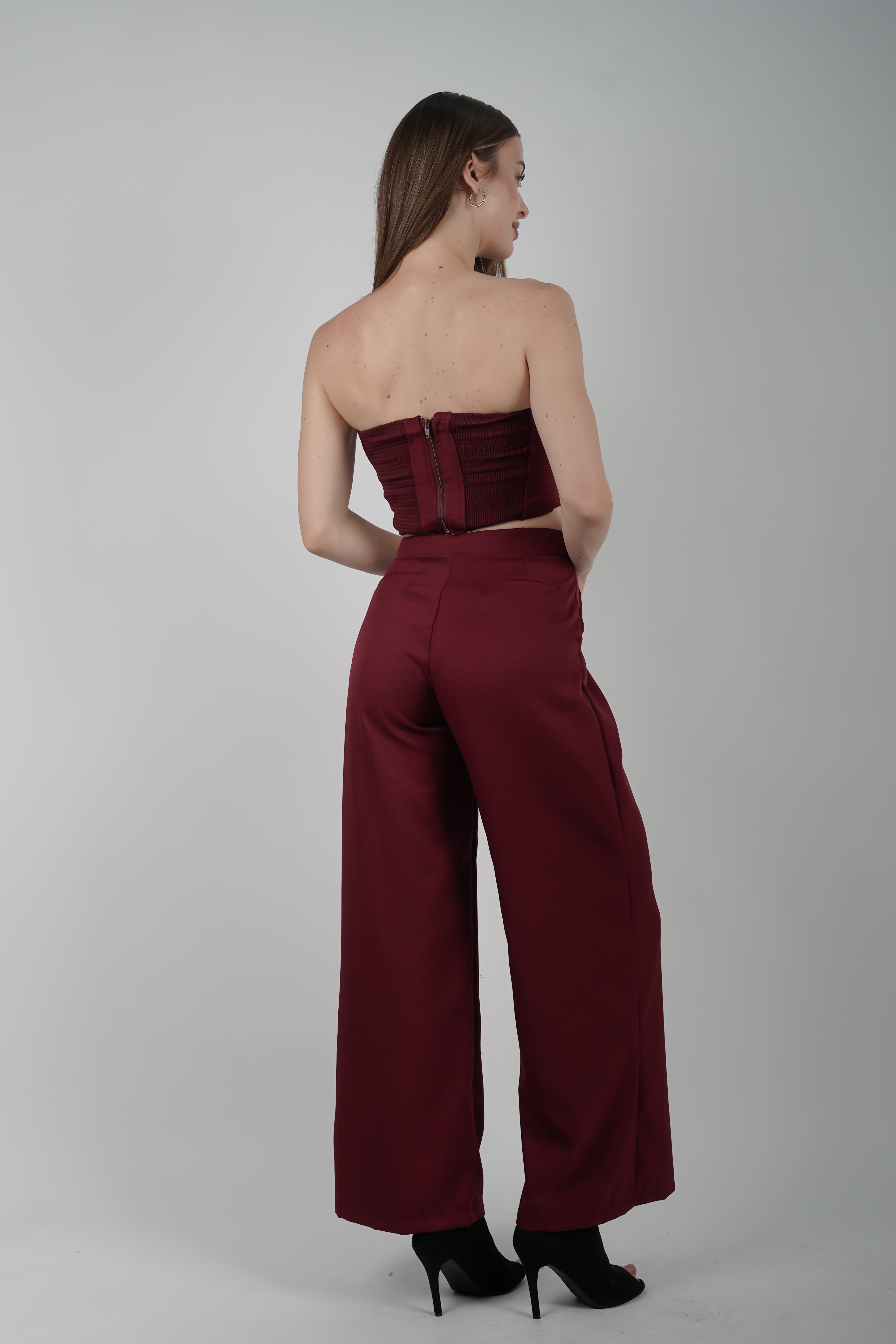 Pantalón de sastrería, corte palazzo, con pinzas que estilizan, con bolsillos delanteros funcionales y con detalle de solapa trasera. Con una caída impecable, estructura firme y silueta poderosa que lo ha convertido en uno de los best sellers de Amaru. Atemporal, elegante y perfecto para dominar cualquier ocasión.