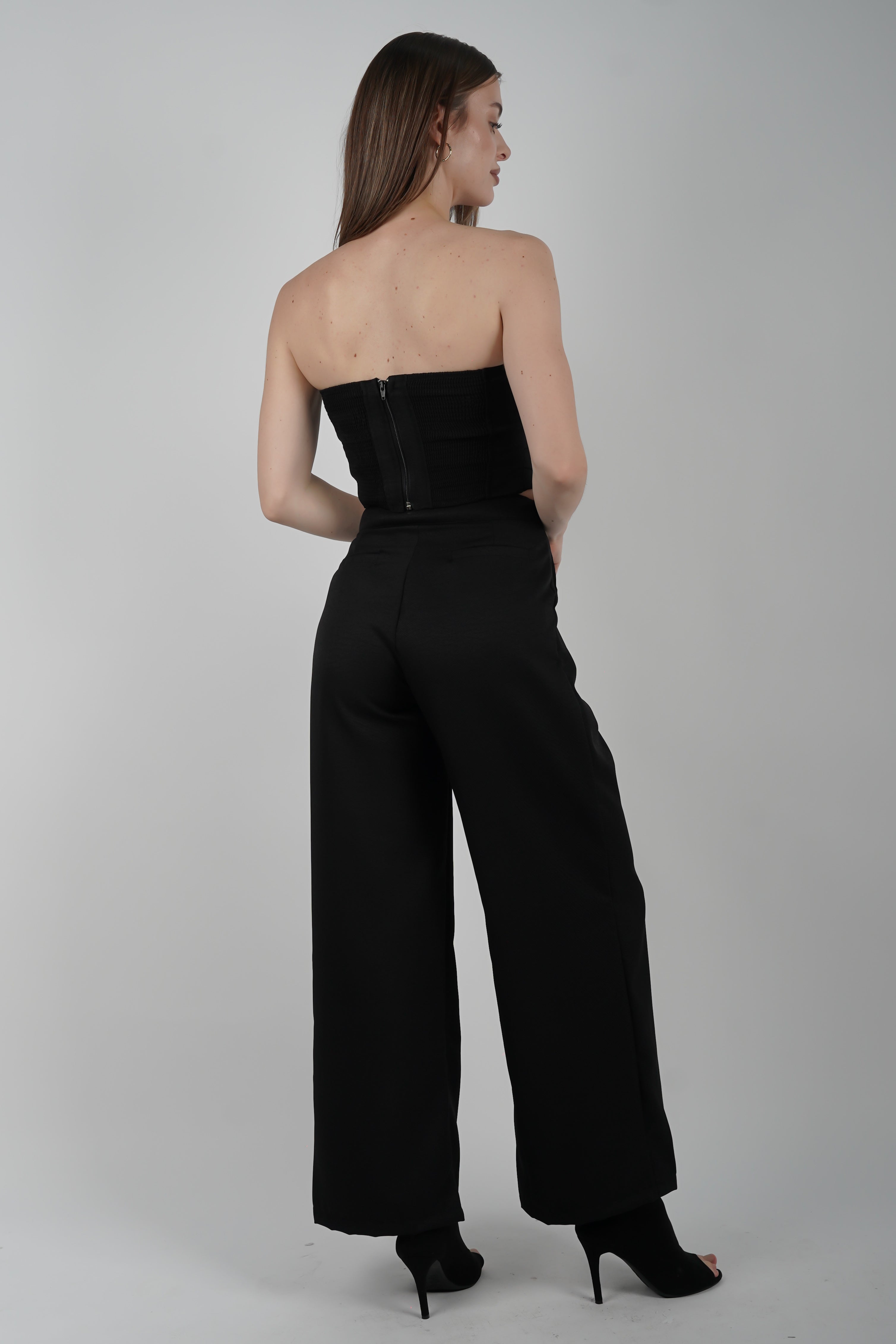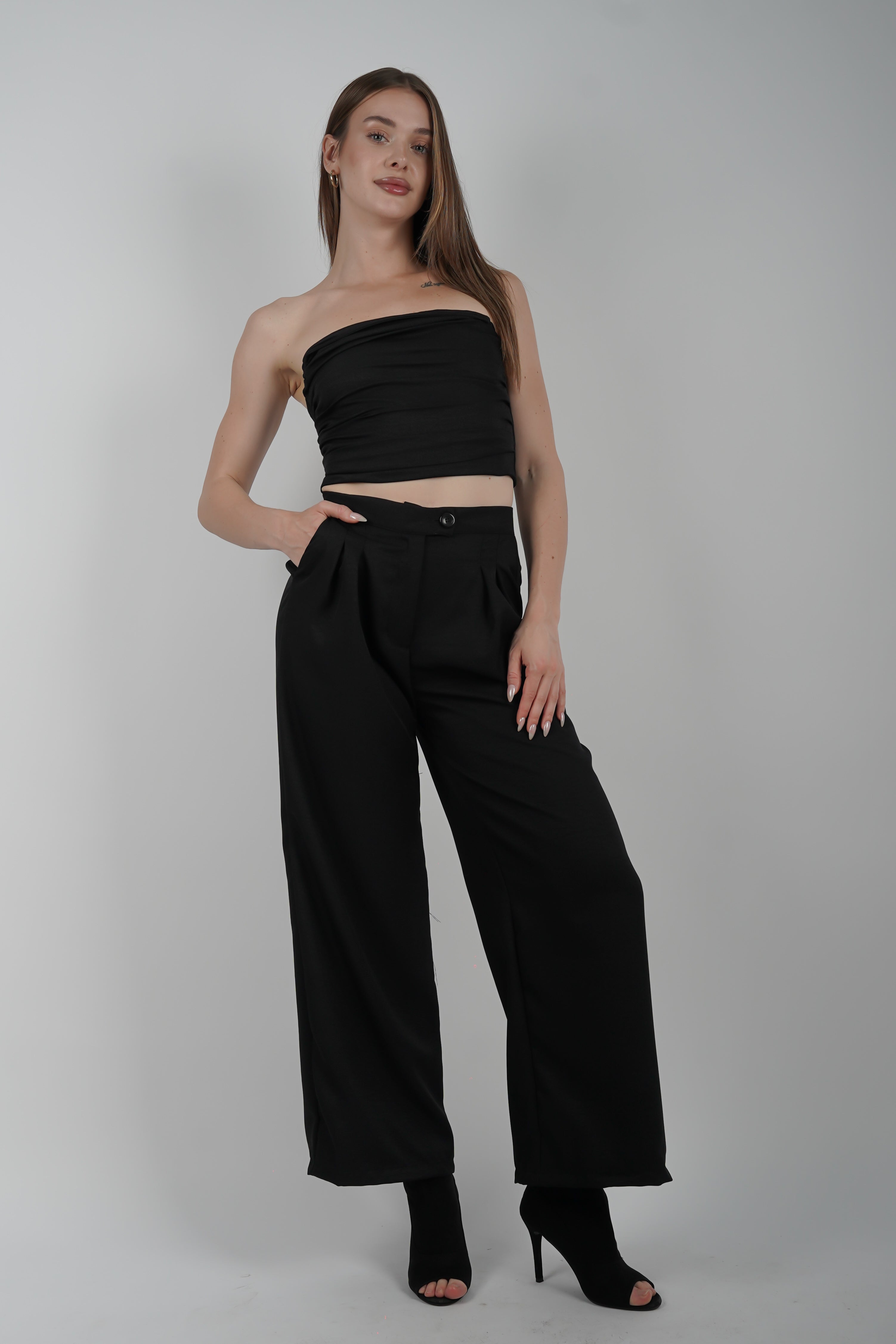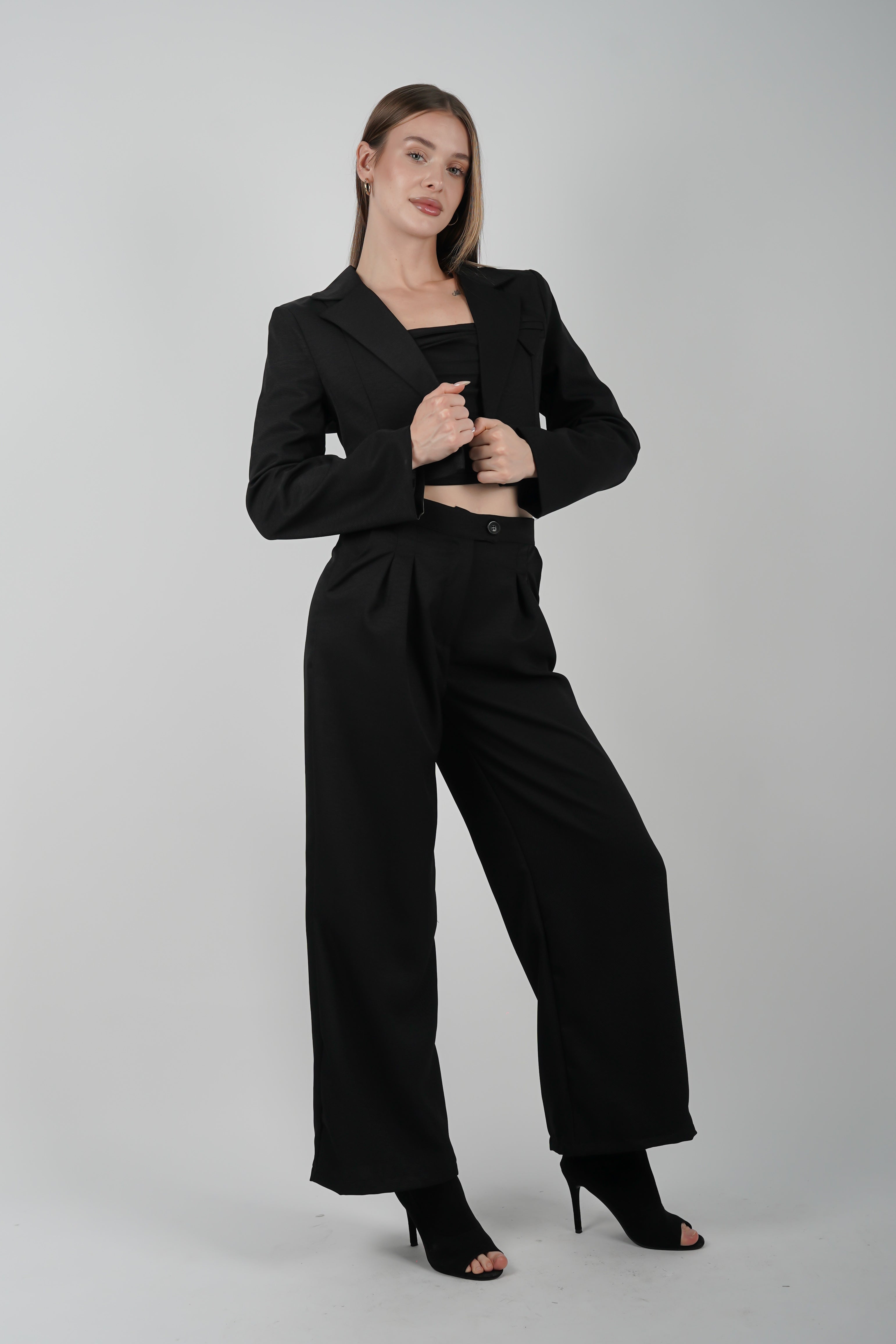 Pantalón de sastrería, corte palazzo, con pinzas que estilizan, con bolsillos delanteros funcionales y con detalle de solapa trasera. Con una caída impecable, estructura firme y silueta poderosa que lo ha convertido en uno de los best sellers de Amaru. Atemporal, elegante y perfecto para dominar cualquier ocasión.