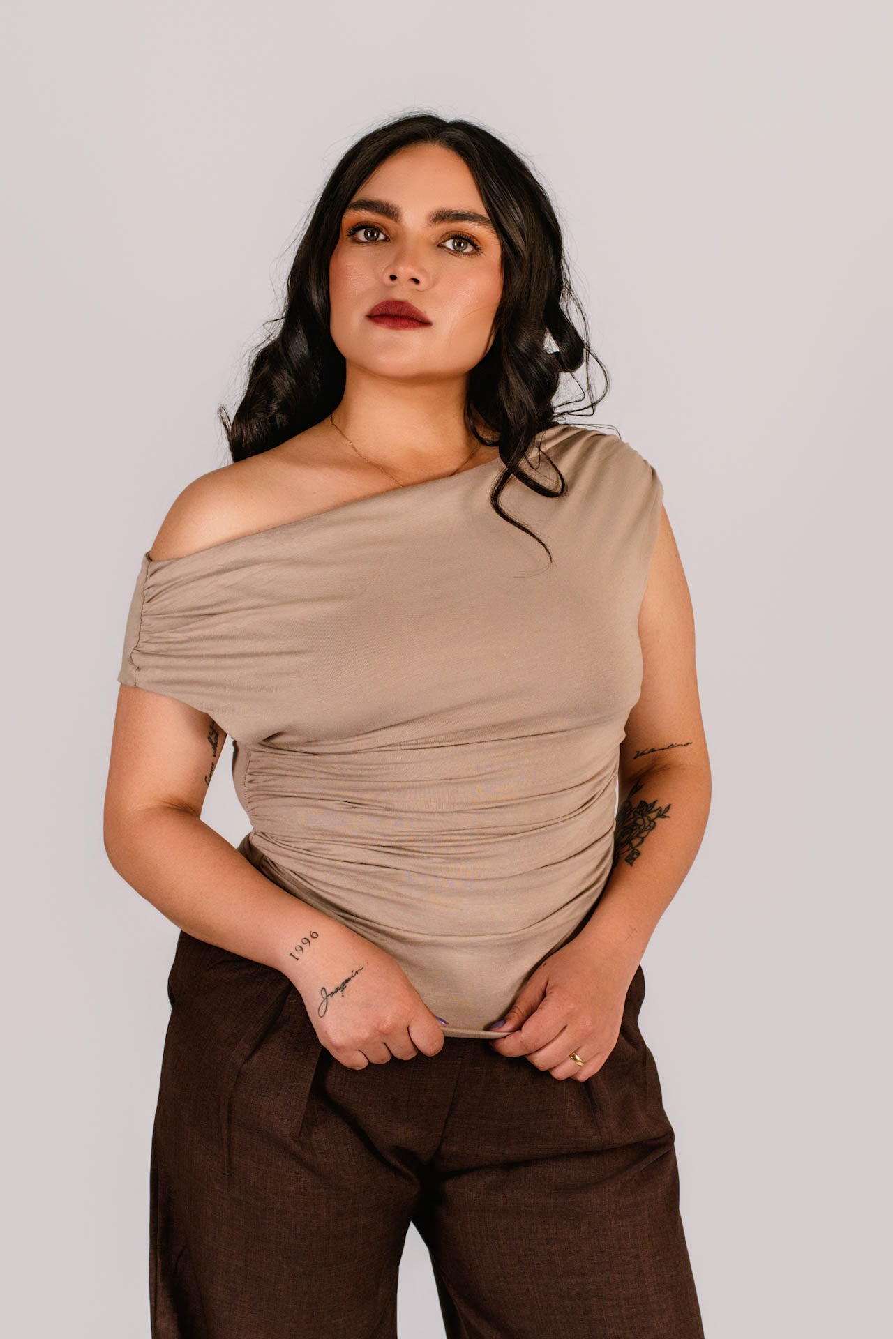Top off shoulder confeccionado en algodón nacional peruano combinado con viscosa. Su tejido ligero y fresco se adapta a la silueta con suavidad, aportando un aire primaveral delicado y versátil. ¡Lo puedes usar de distintas maneras!