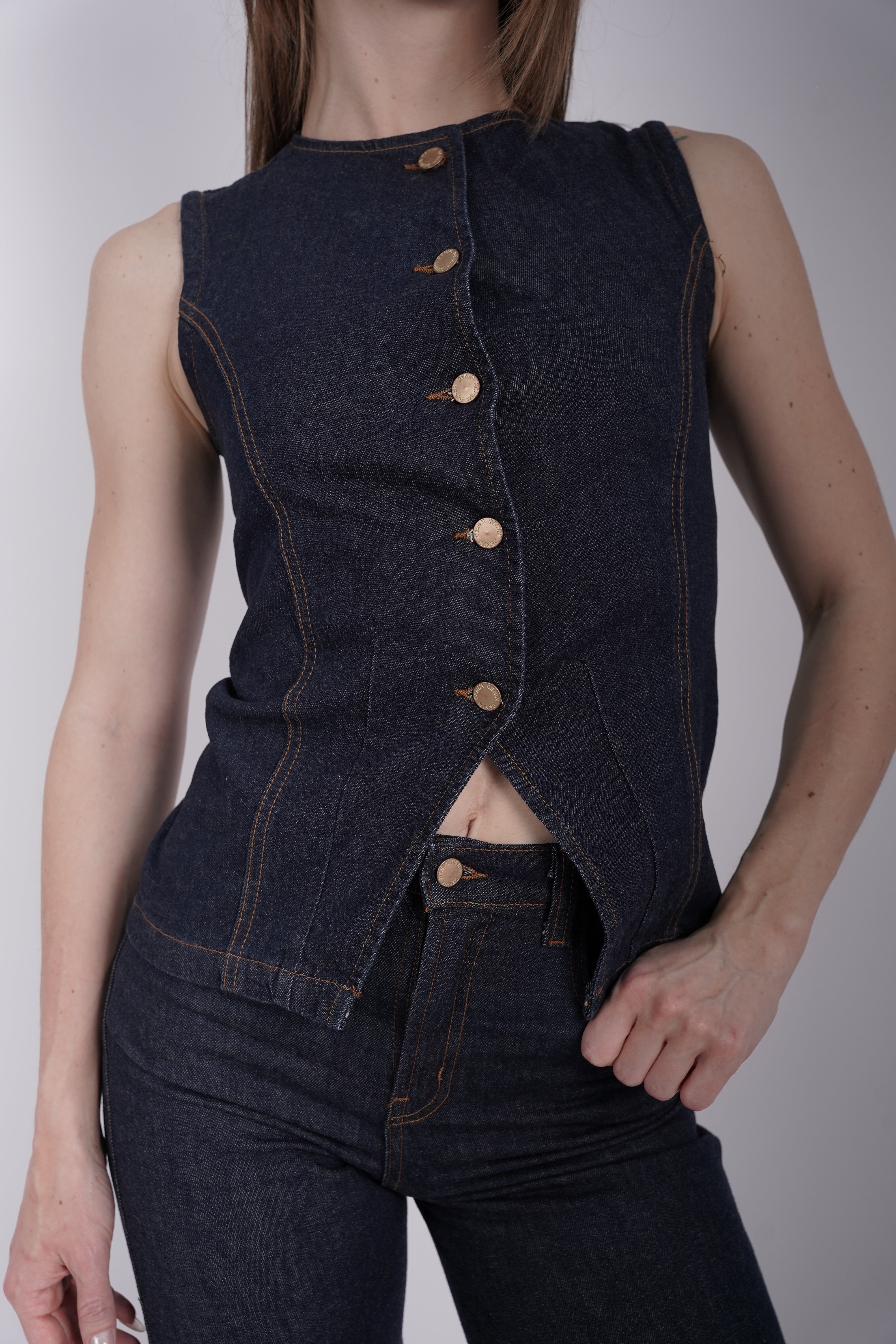 Elaborado en denim peruano 100% algodón, con un toque de elasticidad extra que brinda comodidad y ajuste perfecto. Su tono dark denim y las costuras en hilo camel lo hacen elegante y actual. Ideal para combinar en múltiples looks y destacar con estilo.