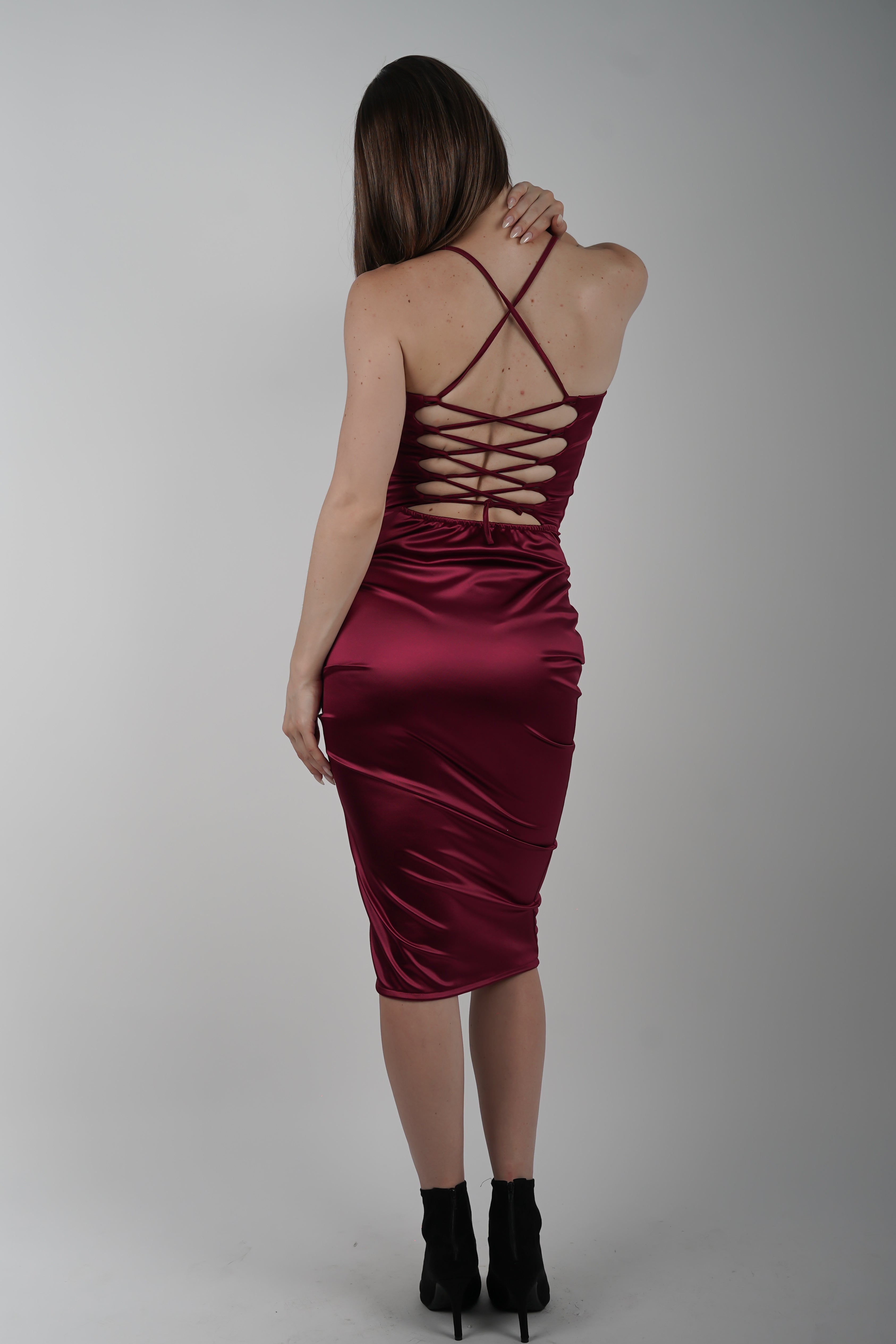 Vestido de edición limitada en satín con spandex, creado para brillar en las celebraciones de fin de año. Su caída favorecedora y ajuste multiagujas que se adapta al cuerpo moldean una silueta femenina estilo sirena. Una pieza especial satinada que te hará brillar y que te acompañará en tus mejores momentos.